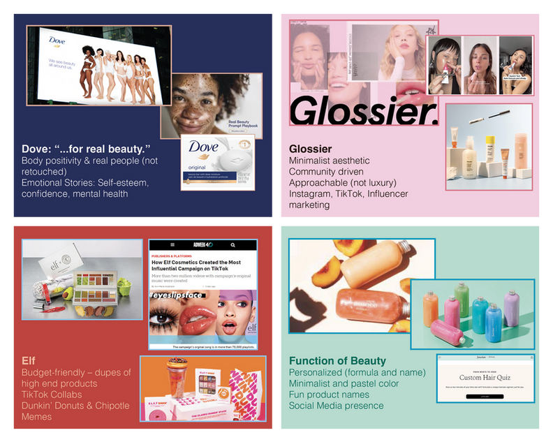 Throughout my process, I gathered inspiration in three categories: conceptual, visual, and packaging-specific. This structure helped me stay focused and intentional in my exploration. After completing my research, I distilled the insights into three key opportunities: connecting with Gen Z, give voice to an important issue, being cheeky or fun. I aimed to include all of these in my final pack design.